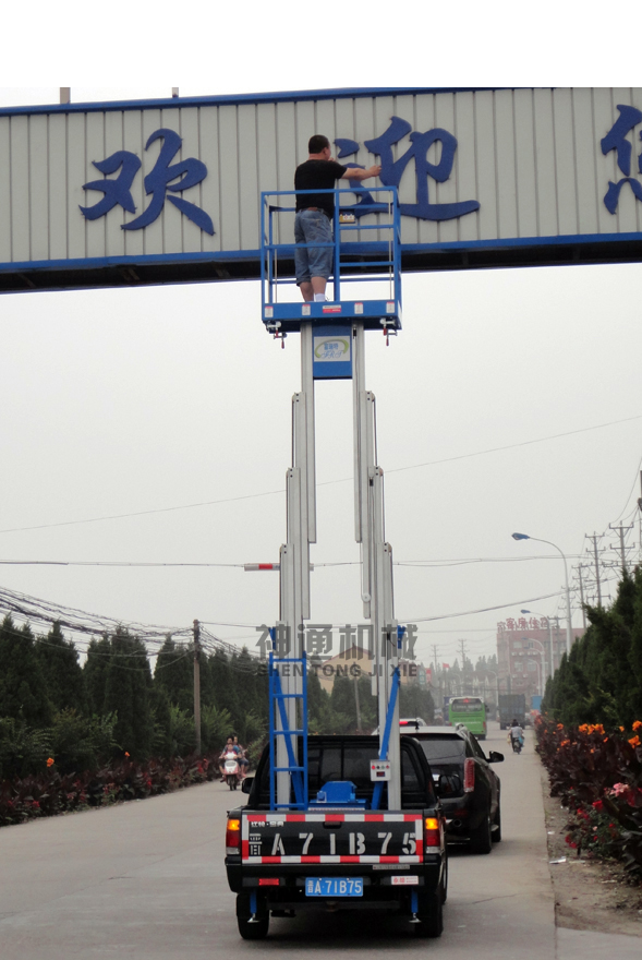產(chǎn)品規(guī)格:車載鋁合金式升降平臺根據(jù)升降高度可分為:單柱6、8、10米,雙柱6、8、10、12米升降平臺,設(shè)備載重150公斤至200公斤。客戶可根據(jù)需求選用解放、東風(fēng)、輕騎、福田、電瓶車等任何車型,設(shè)備直接采用汽車或電瓶的直接動力升降。